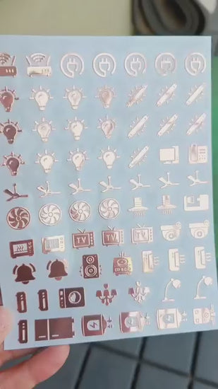 Functional Icons: Includes clear symbols for fans, lights, AC, geyser, doorbell, and more.